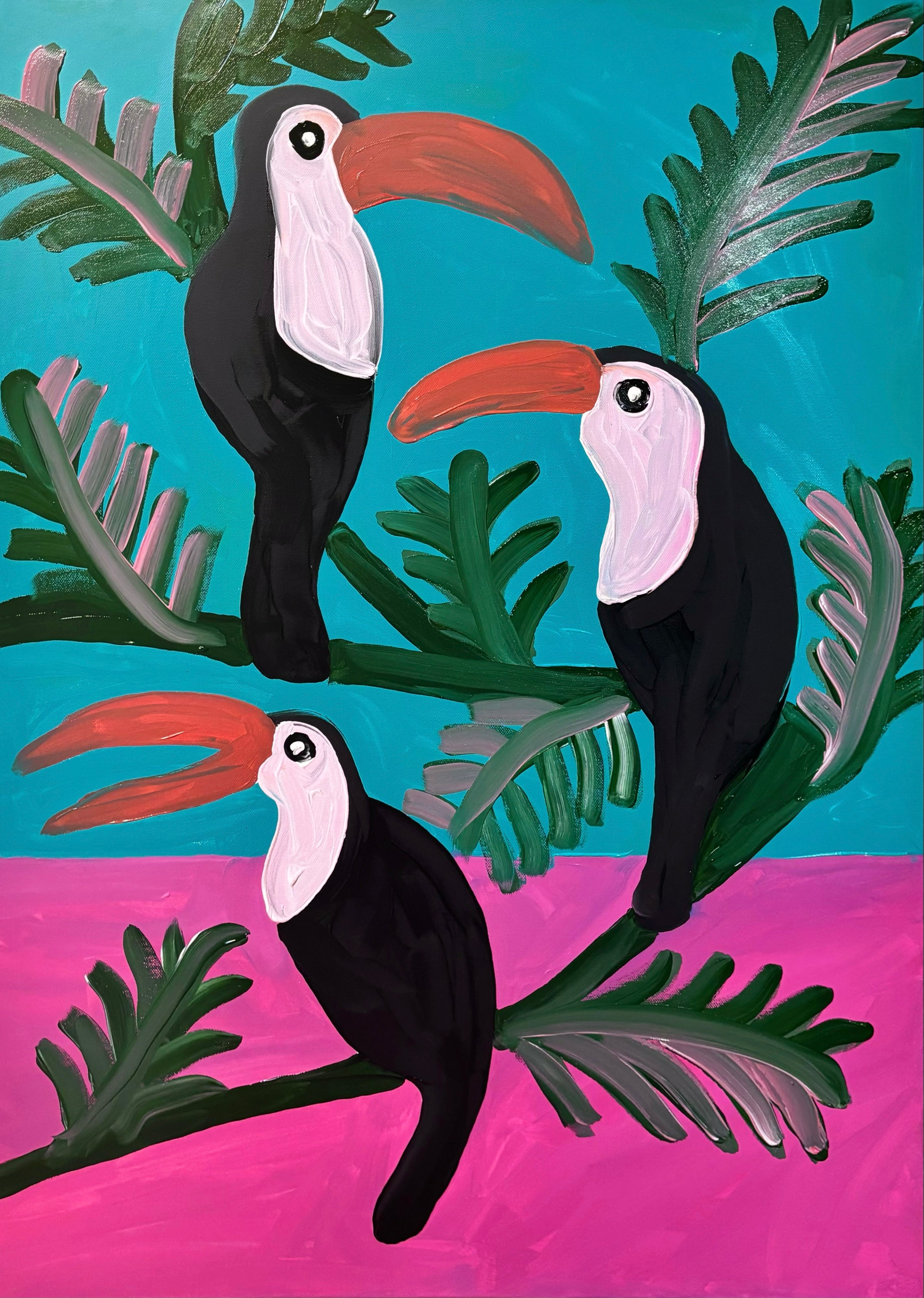 Aurora Camaiani, born in 1992 in Rome, graduated in Fashion Styling in 2014. In 2015, she moved to London for a year to work as a Graphic Designer. Completely in love with the city’s creative and free-spirited atmosphere, she began painting. Her art is characterized by the use of color and contrast; the careful selection of each color is essential to ensure that every piece is visually satisfying to the viewer.